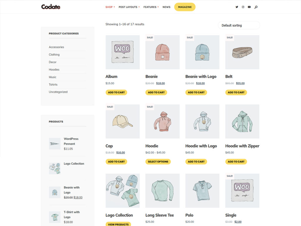 WooCommerce shop, Yoast SEO, W3 Total Cache, Contact Form 7, GiveWP and other well-known plugins are compatible with Codate thanks to the use only official wp functions and standards.